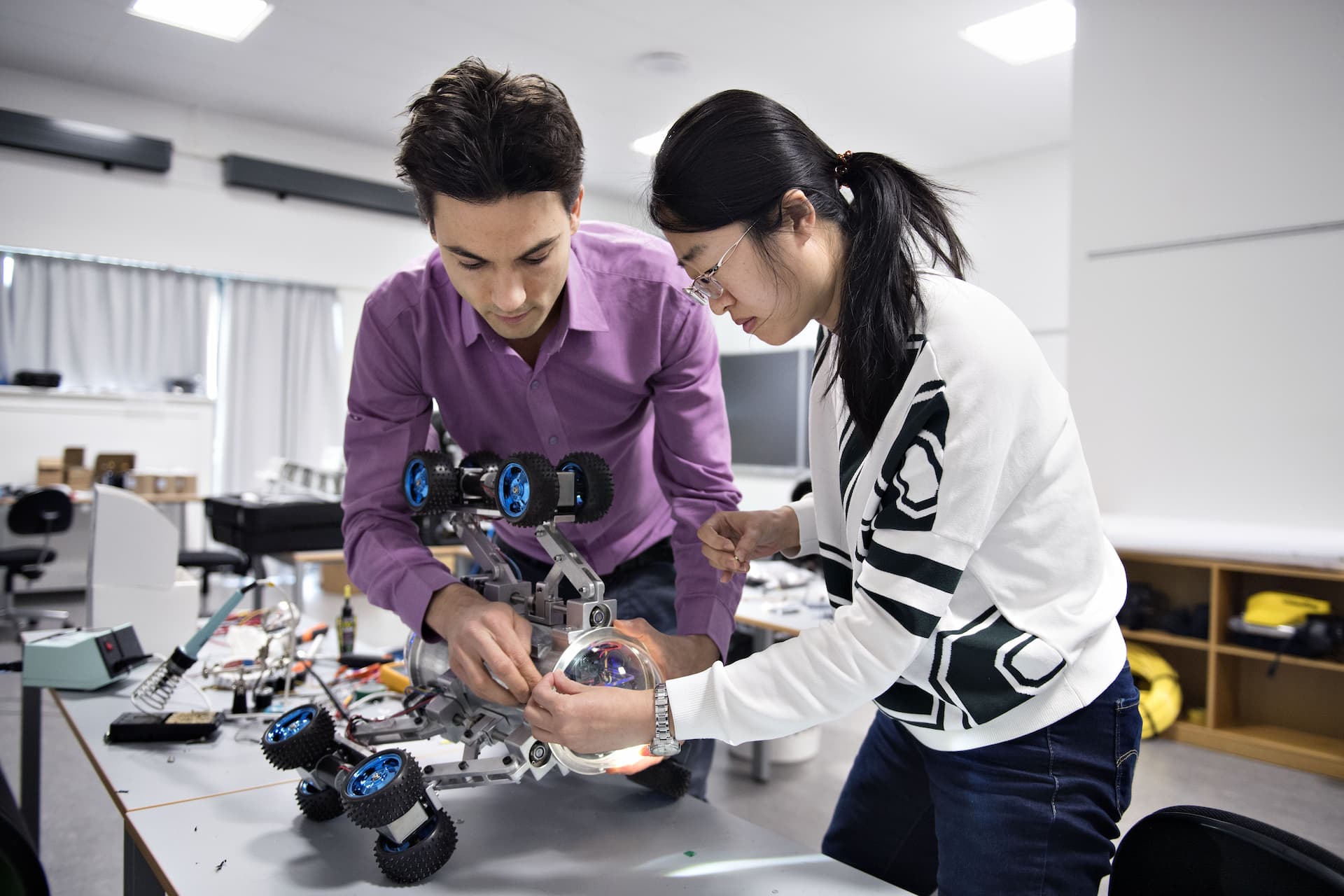 At the Department of Energy Technology, you will find a lot of well-equipped and modern laboratories enabling you to carry out exciting laboratory experiments and tests. These tests will verify the theoretical analysis, which you apply during the project work. The laboratories make it possible to perform realistic tests within dynamic systems and thermal processes, as they include advanced computer-based measurement and control facilities.