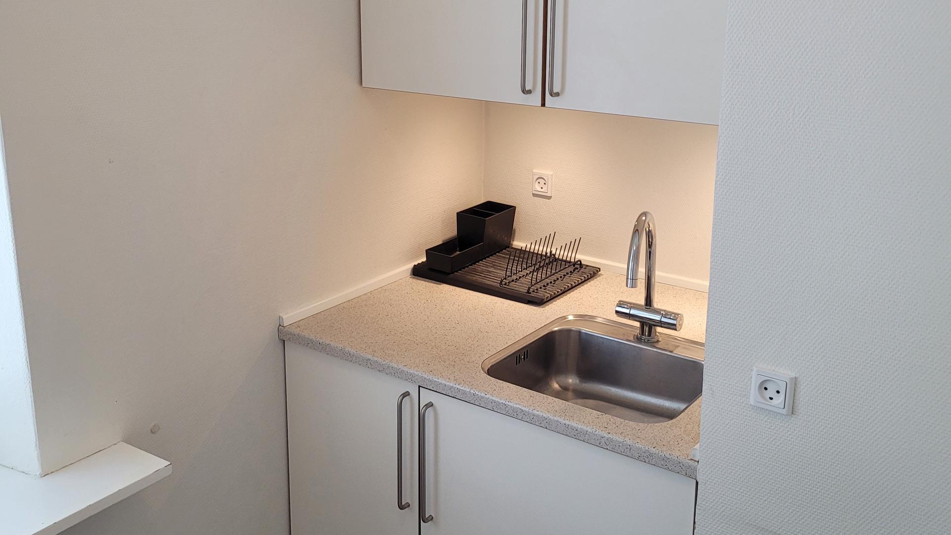 This apartment is in a building located in downtown Aalborg. In the building there are five floors with 23 apartments. All apartments have a private entrance, facing a common stairway.
