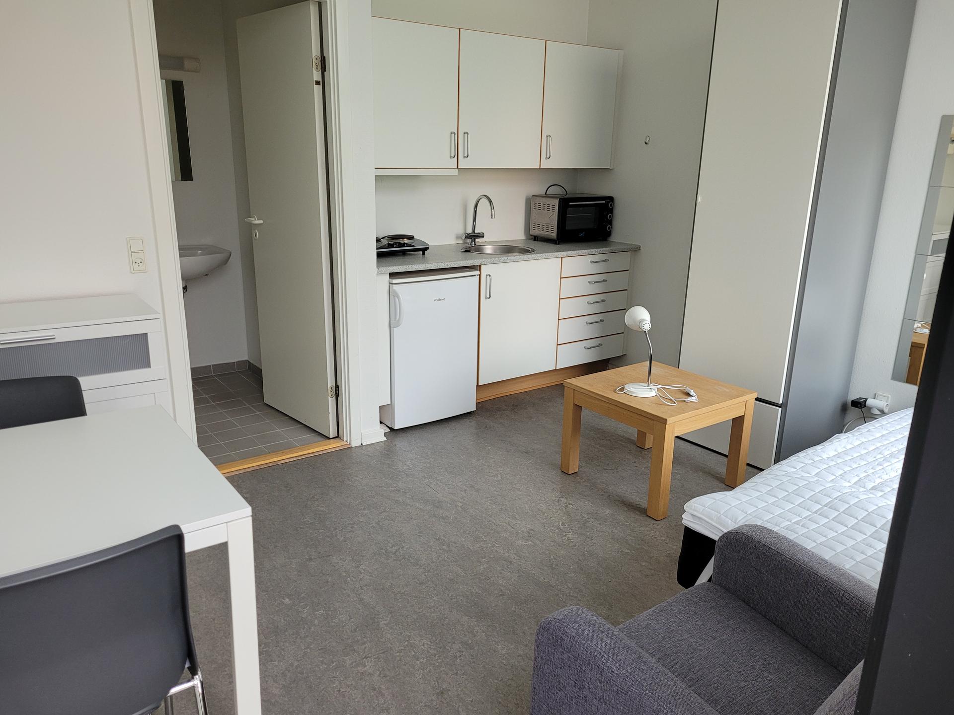 All 27 apartments at Ny Kastetvej are operated by the IAO. The inhabitants in the building are either international staff or students. The apartments for students are youth studio apartments (1-room), with a private kitchen and bathroom.